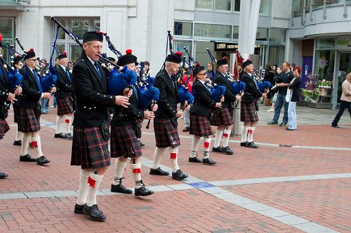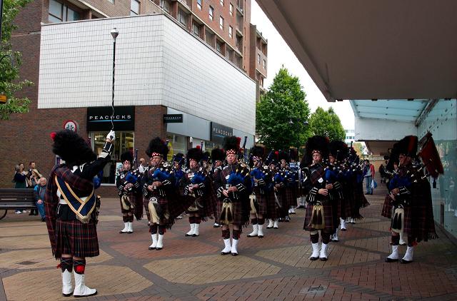 On 25 June 2011, Reading Scottish lead a parade for the Armed Forces Day in Bracknell. There are two groups of photos below. Many thanks to Jekaterina Vladimironva for these pictures.